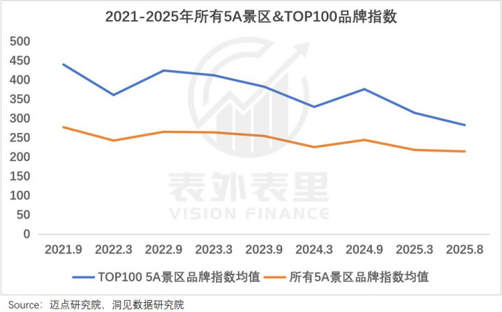 就连国庆前,“去哪人少”的搜索热度都涨了不少,小县城成了热门目的地,反观近四年,排名前100的5A景区,品牌影响力都快掉一半了。